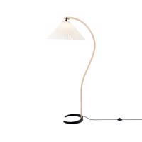 Stojacia lampa GUBI Timberline, drevený rám, biele plátenné tienidlo